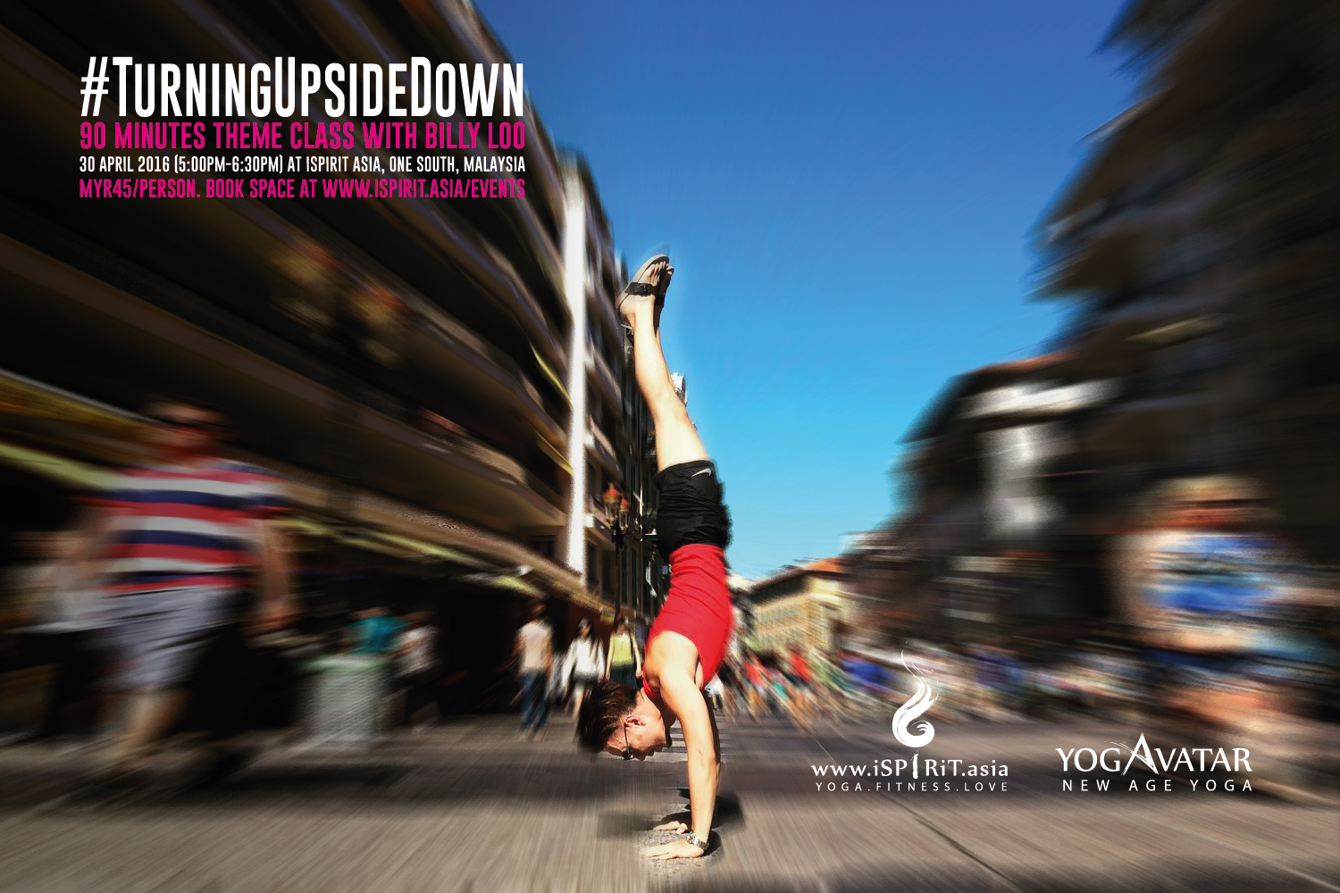 Get ready to turn your world upside down! Join #TurningUpsideDown: 90-minutes Theme Class With Billy Loo for a fun and inspiring class exploring yoga inversions such as headstand, forearm stand and handstand. Inversions are very therapeutic, but can be scary or frustrating too. They don’t need to be! Come defy gravity and discover the joy of being upside down. Not to worry! This class is open to all levels, and you will be met exactly where you are at and given the tools you need to progress at your level.