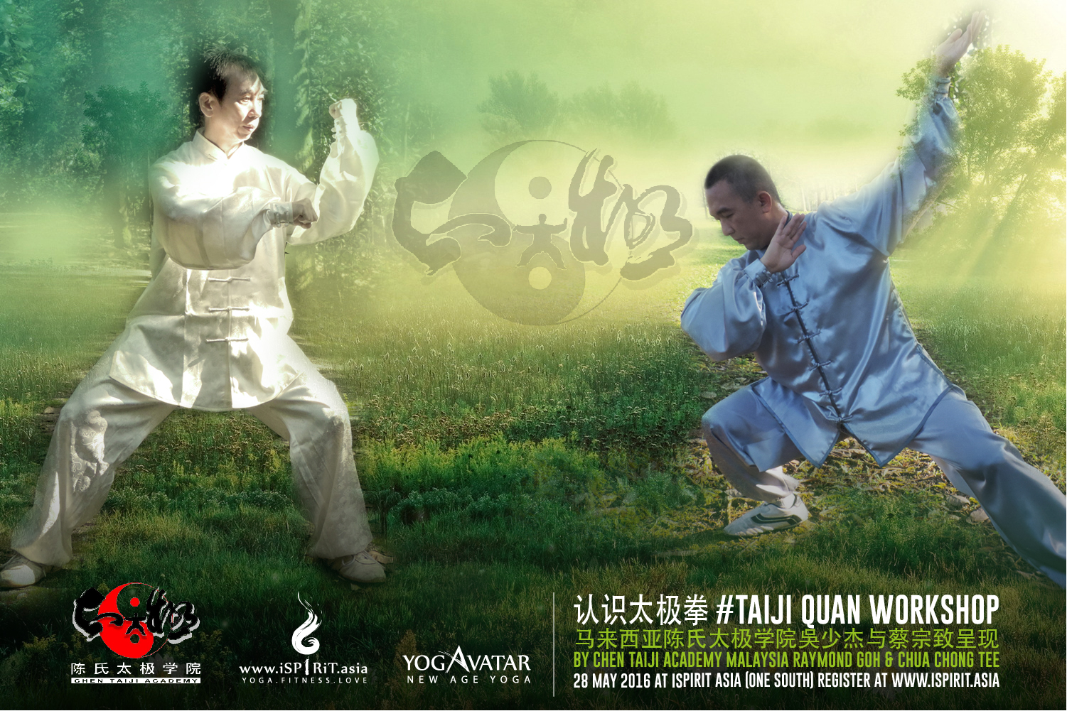 认识真正的太极拳! 体验动作的快慢相兼,刚柔并济, 学习如何从松柔中爆发出劲力!由马来西亚陈氏太极学院院长兼总教练吳少杰与副院长兼教练蔡宗致为您呈现三小时“太极拳~慢或快工作坊”。老少咸宜,学以致用。 Introducing the real TAIJI QUAN! Feel the fast and slow, the strength and softness in the movements and learn the explosive power through relaxing your body. Join Taiji~Slow Or Fast workshop by the Principal & Chief Instructor of Chen Taiji Academy Raymond Goh and the Deputy Principal & Instructor Chua Chong Tee on 28 May 2016 at iSpirit Asia Kuala Lumpur Malaysia.