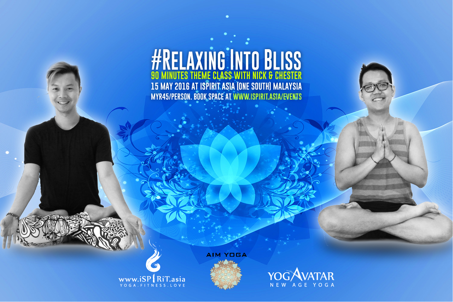 Experience the true relaxation. Join Relaxing Into Bliss: 90-minutes Theme Class with Nick and Chester on 15 May 2016 at iSpirit Asia Kuala Lumpur Asia to embark onto a relaxing journey. This practice will heighten your body senses, dissolve layers of tension and sharpen your Awareness and experience the magic of Bliss.
