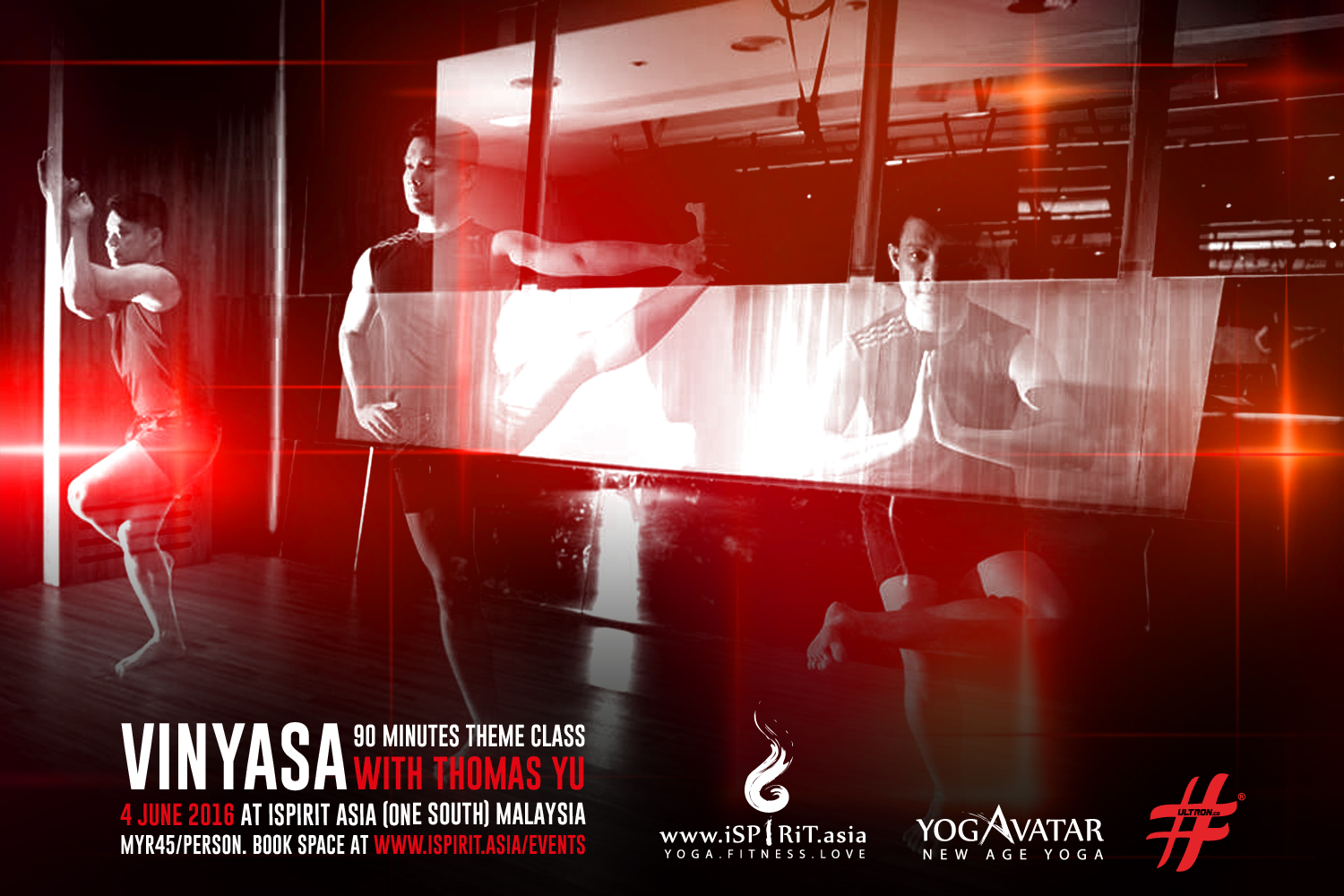 Join Vinyasa 90-minutes Theme Class with Thomas Yu on 4 June 2016 at iSpirit Asia Kuala Lumpur Malaysia. This fun and strong 90 minutes flow yoga class is a creative blend of poses, includes with poses of balancing, core work, inversion, as well as back-bend. A great class for all levels of yoga practitioner,modifications will be offered for a variety of levels.
