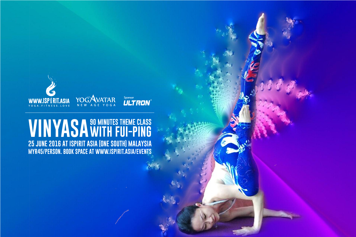 Join Vinyasa 90-minutes Theme Class with Fui Ping on 25 June 2016 at iSpirit Asia Kuala Lumpur Malaysia. A playful, sweaty flow with a creative blend of balancing poses, back-bend, as well as hips opening to stir your soul and awaken your potential.A great class for all levels of yoga practitioner, modifications will be offered for a variety of levels.