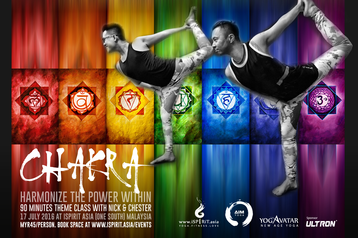 Join Chakra~ Harmonize The Power Within: 90 Minutes Theme Class With Nick & Chester on 17 July 2016 at iSpirit Asia Kuala Lumpur Malaysia. Uncover your true purpose of your energetic centers. Within our bodies we have “power centers” we call this as Chakras, where energies being stored and distributed. A great class for all levels of yoga practitioner, modifications will be offered for a variety of levels.