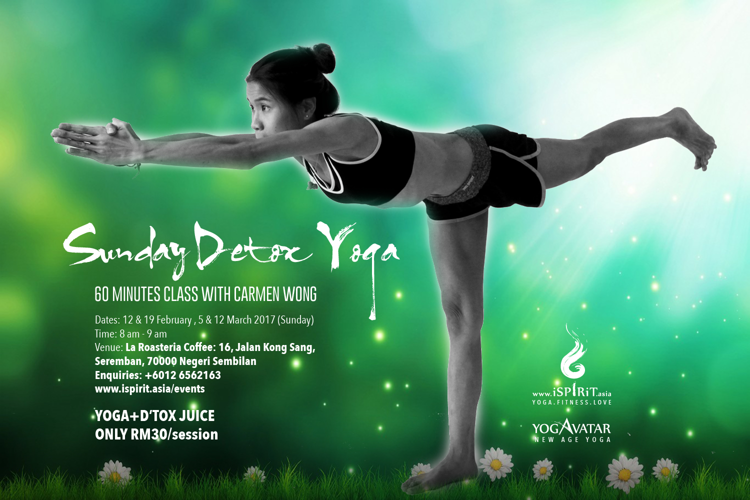 - MYR30 per ticket (1 Yoga session and 1 free D’tox Juice)