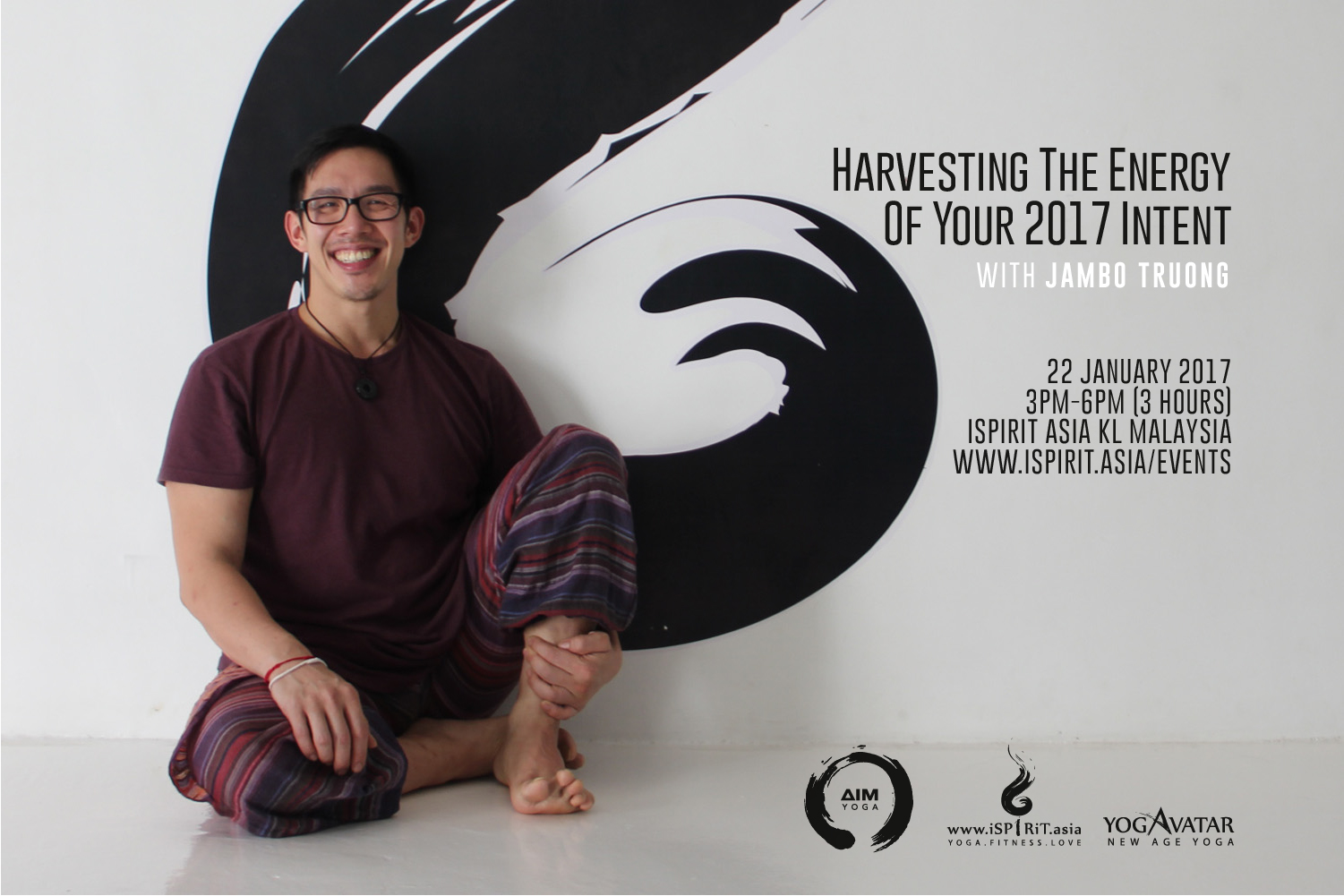 Once we have decided what our New Year’s or New Life Resolutions are, how do we maintain the path towards our goals? Join Harvesting The Energy Of Your 2017 Intent With Jambo Truong on 22 January 2017 at iSpirit Asia Kuala Lumpur Malaysia. The workshop is suitable for all levels of yoga practitioner, modifications will be offered for a variety of levels.